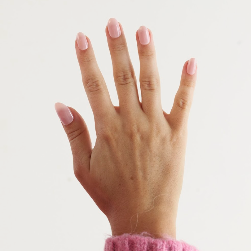 Your natural nails, but better- and with a hint of light pink. It's on our short round nails, which give you a natural look with a short length.