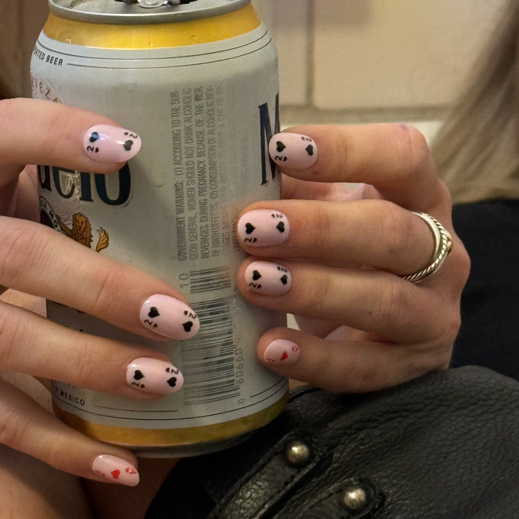 This design is on our short round nails, which give you a natural look with a short length.